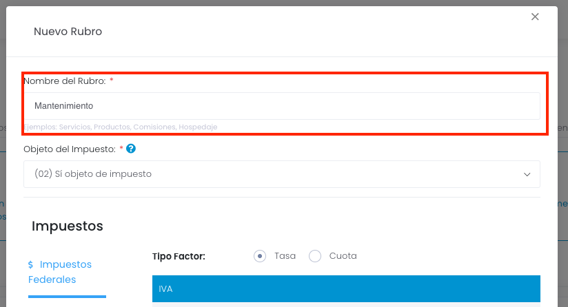 Para emitir un comprobante con retención del IVA 6%, es necesario dar de alta un nuevo rubro en su catálogo. Las indicaciones para crear el nuevo rubro son las siguientes: