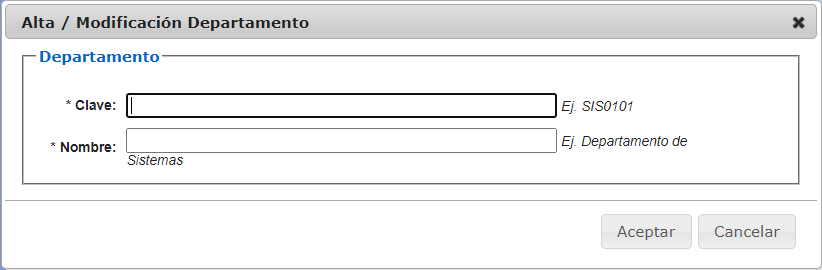 Al agregar un nuevo departamento se le deberá asignar una clave identificatoria para uso interno. Se pueden crear clave alfanúmericas, o númericas, ejem. ADM01, 002, etc.