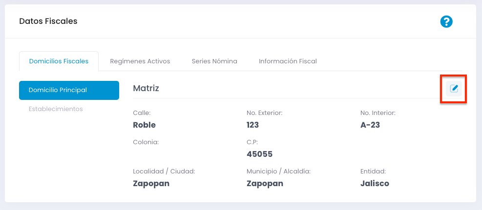 En caso de que requieras realizar una corrección, haz click sobre el botón de editar ubicado en la parte superior derecha del domicilio.