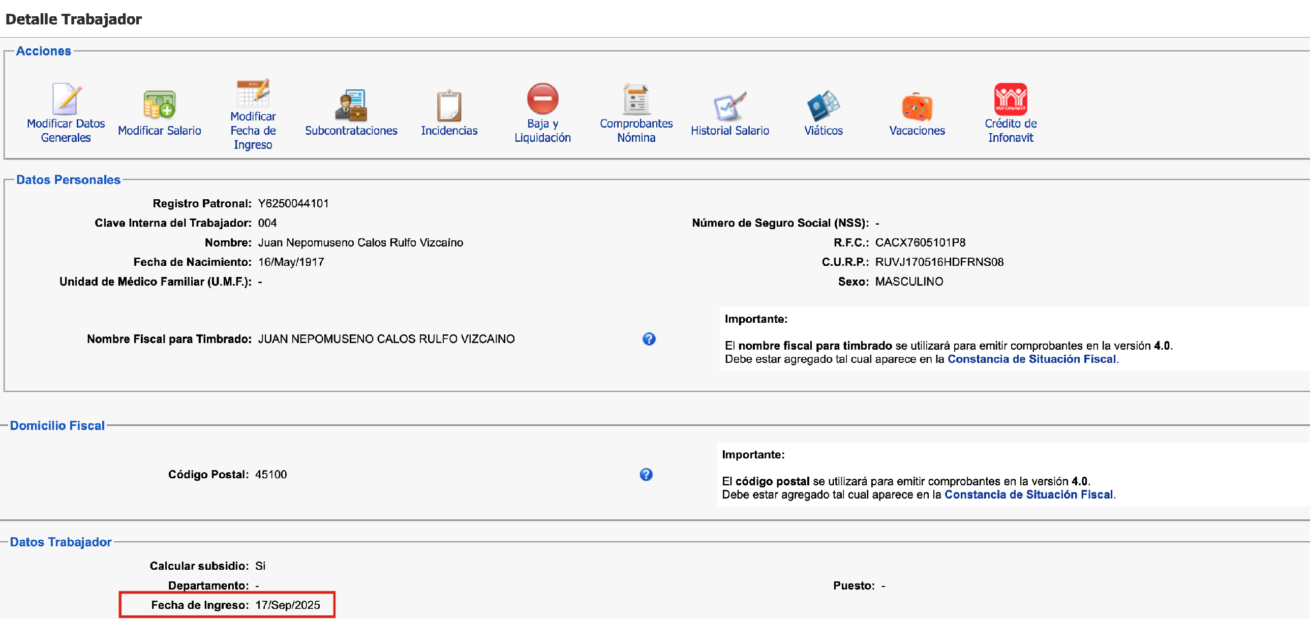 Lo mismo aplica en caso de querer dar de baja al trabajador.
