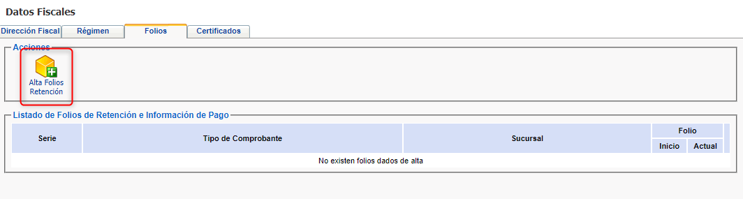 Una vez agregada la serie, esta se muestra en el listado de folios de retención e información de pago.