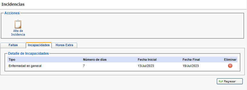 📣 Nota: La incidencia no podrá eliminarse si se encuentra en proceso de nómina.