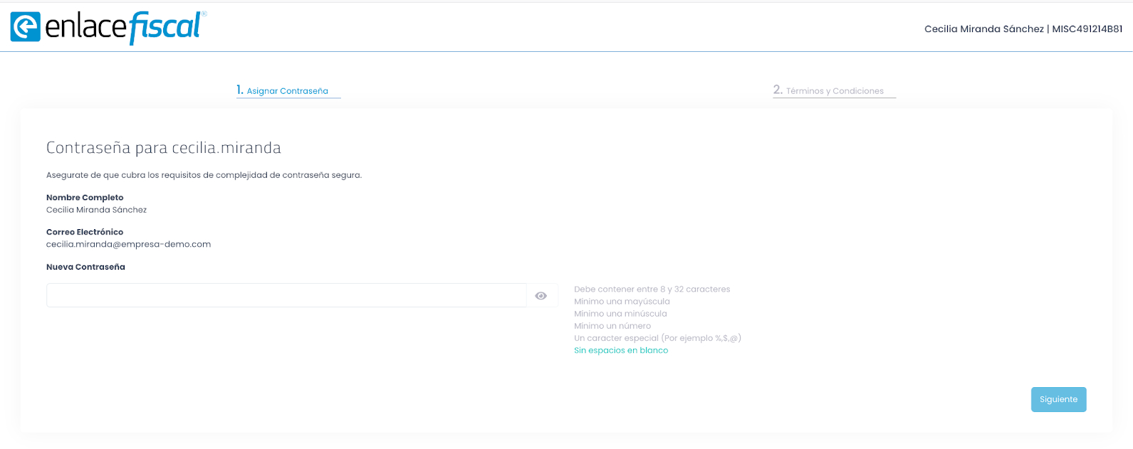 Asigna una contraseña que te servirá para ingresar al portal de Enlace Fiscal