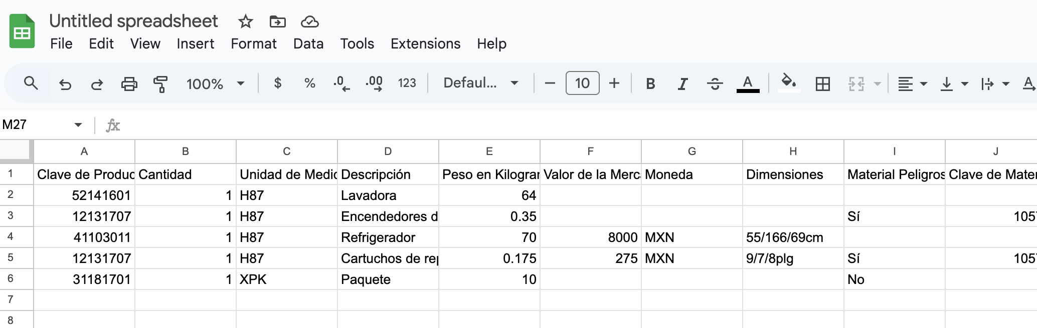 Si tu programa default para abrir archivos csv es Excel, puedes hacer doble clic sobre el archivo descargado para abrirlo en la hoja de cálculo y añadir las mercancías.
