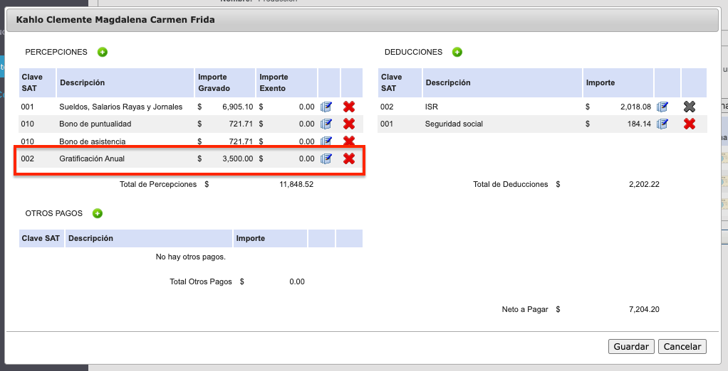 Una vez agregados las percepciones y/o deducciones necesarias, se puede continuar con el proceso normal para emisión de la nómina.